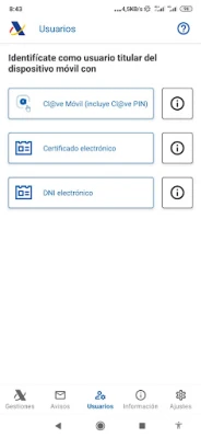 Se ofrece una gestión de identidad digital basada en el número de Referencia, Cl@ve o certificado electrónico (software o por NFC con el DNI electrónico).
