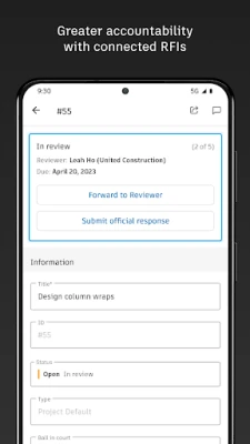 “I’m excited about being able to effortlessly tag a snippet from a drawing onto an RFI and immediately assign responsibilities and track how the project team interacts with a particular issue or RFI. The ability to track an issue’s progression in real-time helps us manage any roadblocks immediately.”
