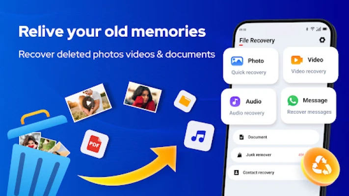Try free All Recovery! This simple file recovery app can quickly restore deleted photos, videos, audios and other files instantly from your device or SD card. No root needed!