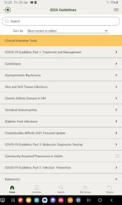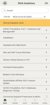 Access the Infectious Diseases Society of America (IDSA) clinical guidelines app anytime, anywhere. Download the app today and stay up-to-date on IDSA clinical guidelines, interactive tools, and new resources. The app contains features to search guidelines, bookmark important pages and take notes on key information. Visit the IDSA app for new guidelines that are released throughout the year and new updates to existing guidelines.