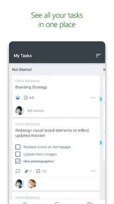 The My Tasks view provides a comprehensive list of all your tasks and their status across all your plans. When working together on a plan, team members always know who is working on what.