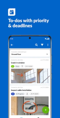 Ongoing synchronisation between computer, mobile phones and tablets keep your team informed about all changes on the construction site in real-time, helping you stay on top of the status of different tasks and defects.