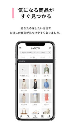 キーワード検索やブランド・カテゴリー検索の他、店舗で商品のバーコードを読み取るタグスキャン検索も可能です。