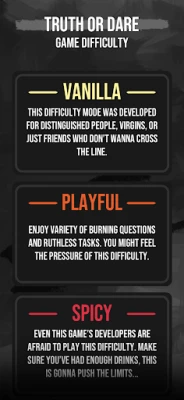 🌶️ Spicy: Are you brave enough? This mode is for thrill-seekers ready to push their boundaries. Packed with daring challenges and edgy questions, it’s ideal for adventurous groups or late-night fun.
