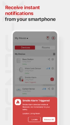 You can remotely set up and test devices to ensure they are working properly. In case of danger, the app will send you push notifications, enabling you to react quickly. You can also share smart devices with your family members, making it possible for them to keep an eye on your home's security as well.